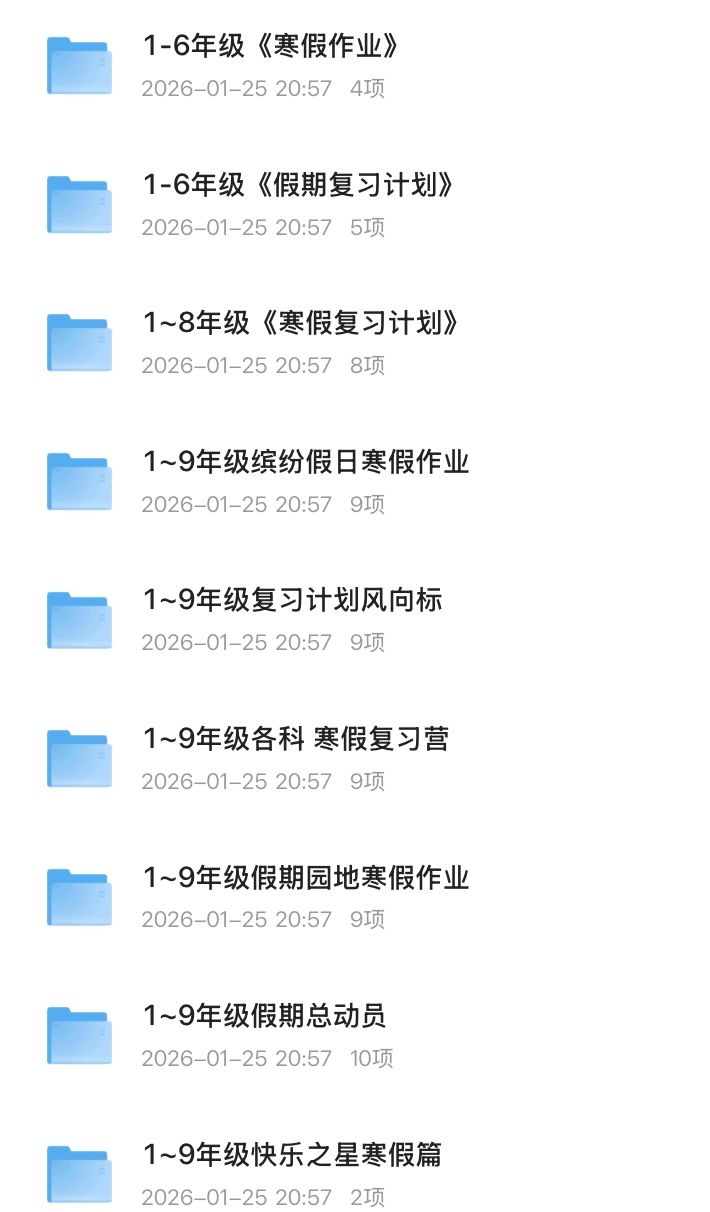 从小学到初中寒假教辅资料大全,帮助孩子针对自身薄弱的环节【25.4GB】