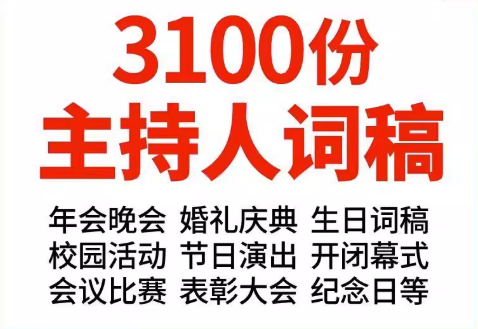 精选3100 份婚礼、年会、司仪主持人、台词稿、晚会、开场、开场白素材【110.6MB】